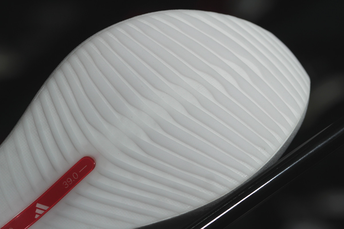 The midsole geometry provides stability in the Hyperboost Edge. The rear of the shoe is quite wide, creating a stable base. Given the midsole stack, this base provides a sufficient sense of control. At the same time, the midsole geometry is more aggressive than that of a typical training shoe. A gentle rocker makes the foot roll smoothly without forcing speed. The shoe’s dynamic performance is moderate – it rolls smoothly and efficiently, but it’s far from the aggressive launch and profile found in models with a carbon plate.